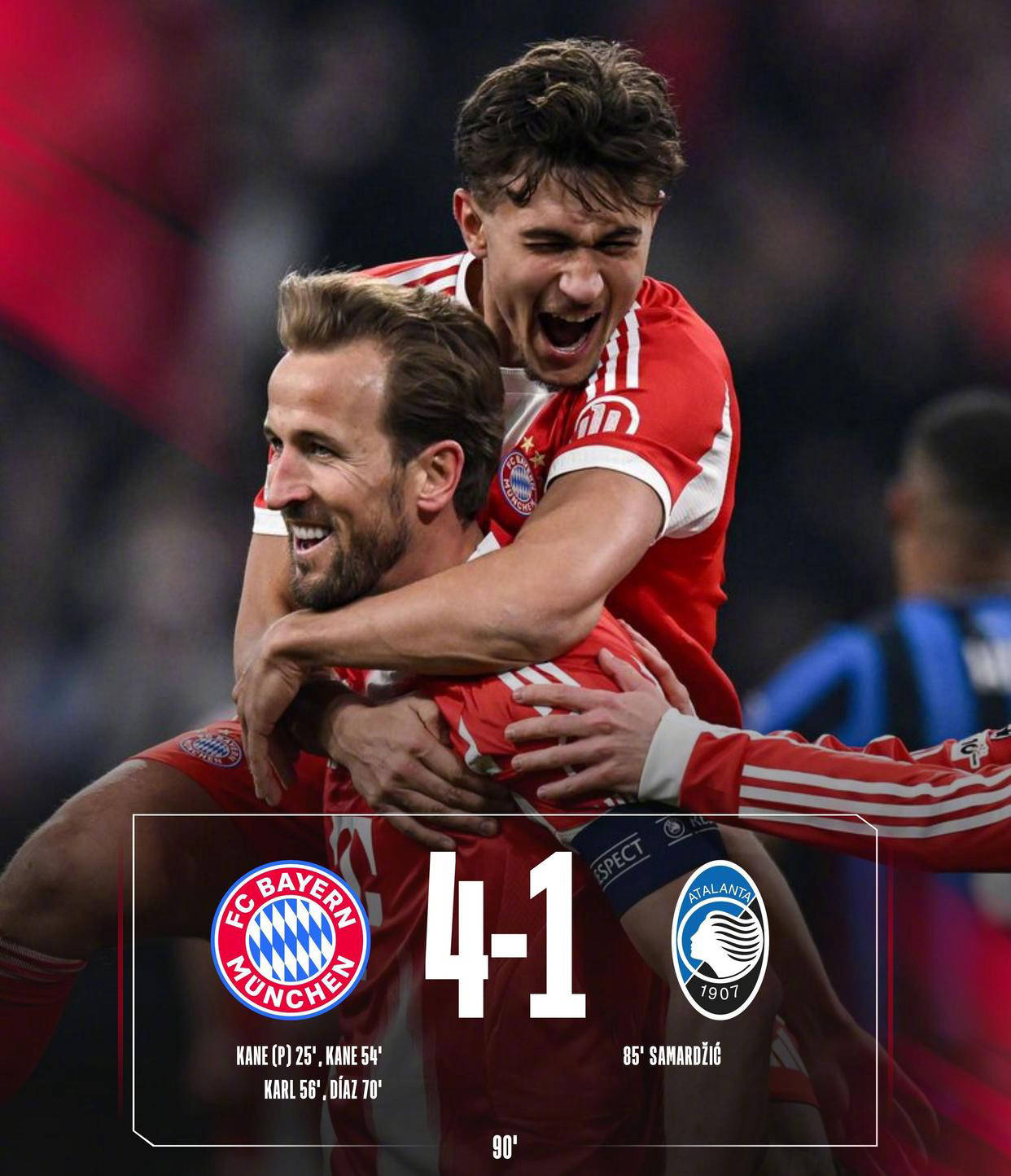 欧冠1/8决赛次回合,拜仁慕尼黑坐镇主场迎战亚特兰大,再度展现出强势统治力。本赛季拜仁在德甲联赛中表现异常出色,取得了21胜4平1负的惊人战绩,稳居积分榜首位,领先身后的多特蒙德整整9分,联赛冠军几乎已成定局。而在欧冠舞台上,拜仁同样表现亮眼。首回合他们便以6-1大胜亚特兰大,本场比赛更是在主场以4-1再次击败对手,两回合总比分高达10-2,强势晋级下一轮。